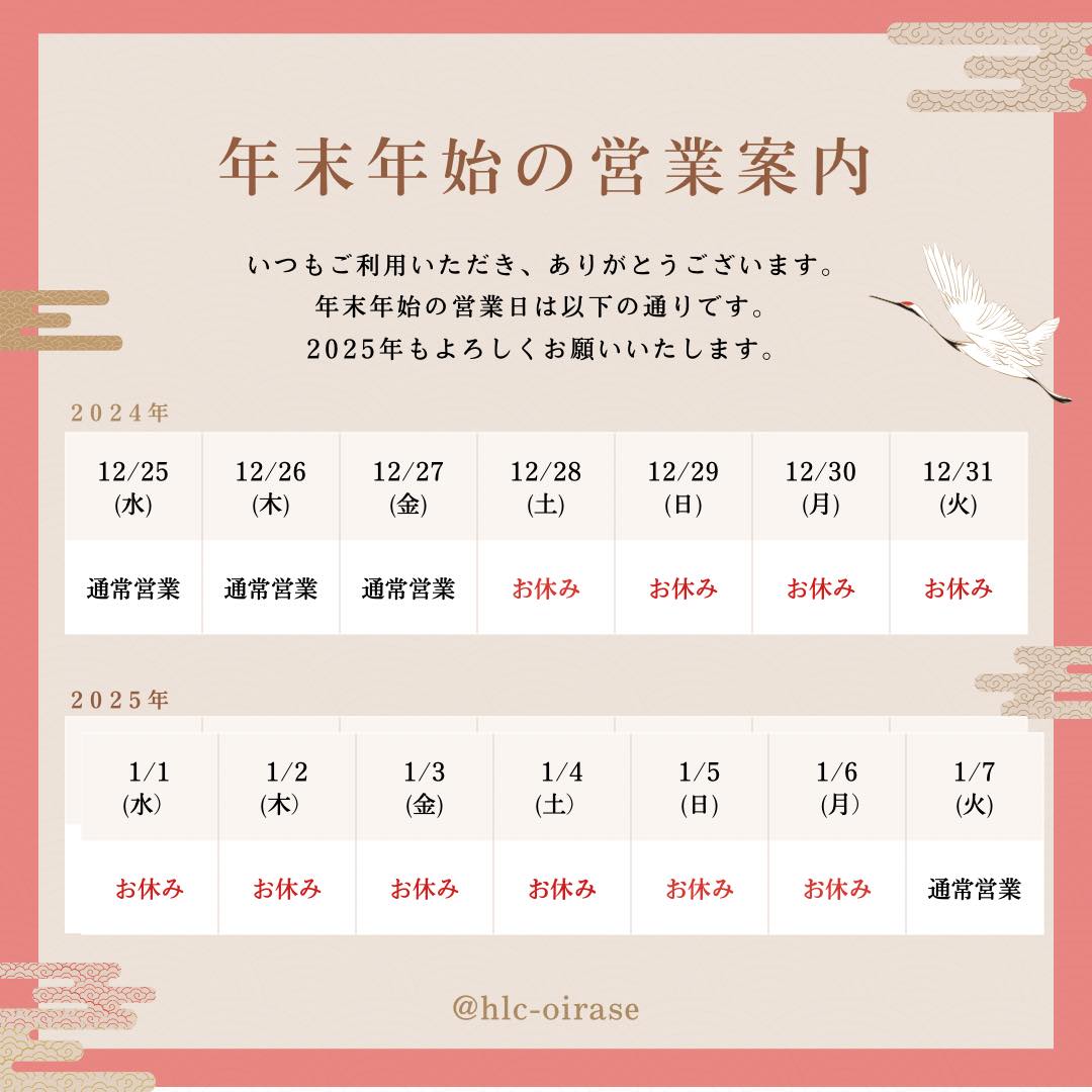 年末年始休業のお知らせ
